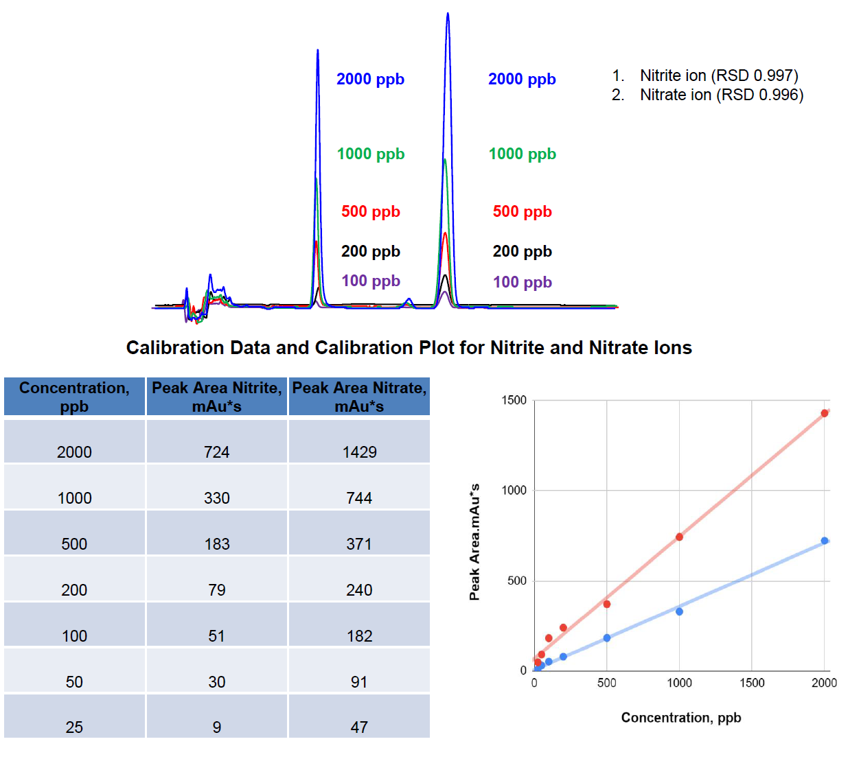 App ID: FLM-C230015 Comixsil HAX基于UV檢測(cè)器對(duì)于樣品中亞硝酸根與硝酸根離子的定量線性研究 Column: Comixsil HAX 3u 100*3.0mm (P/N: FMD-HAX3-YONU) Mobile phase: 60% ACN with 10 mM ammonium phosphate pH 3 A: Water (35%), B: ACN (60%), C: 200 mM AmPh pH 3 (5%) Flow rate: 0.6 ml/min Detection: 210nm Samples: 25-2000 ppb (each) Injection: 50 uL
